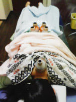 手の甲と、ハリうたれまくり!