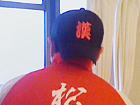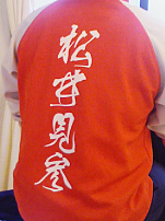 背中には「松井見参」頭には「漢(おとこ)」の文字。