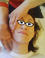 上向きに寝て、まずは顔の骨格を確認しながら、手のひらで軽く押される。そこから、まるで粘土をこねるように、