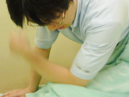 重たいであろう脚を持ち上げ、脚の付け根までていねいに揉みほぐしてくれます。