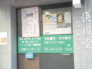 笹塚駅から甲州街道を新宿方面向かい、脇道へ入ってすぐ「快復堂」の看板がみえます。
