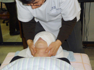 山田総院長の施術を熱心に聞き入って、取材にも協力してくれていた。