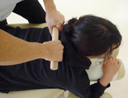 続いて、2点に丸い球のついた棒で圧しながら背中から腰をチェックされる。
