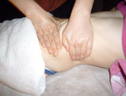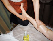 ヒザ下のから大腿部、ソケイ部に向かって、リンパにそってぐいぐいツマリを流していく。
