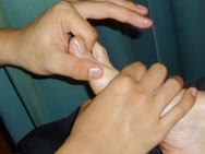 指の一本一本や指の付け根の細かい膨らみまで、丁寧に細かく押し揉んでいく。