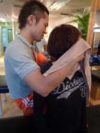 先生「まずは、カラダを目覚めさせて、頭をスッキリさせましょう」とカチカチ身体のヤマダに、少々呆れ気味・・・