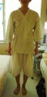 施術室に入ってお着替え。これが何とも懐かしいワッフル生地の甚平なのだ。これは、岡先生のお母さん手作りでワッフル生地にもこだわったそう。確かに、この肌触りよい甚平って昔から子供用しかなかったような?