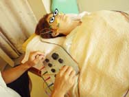さらに!先生がなにやら機械を設置しだし、顔にささったハリにコードをつなげていく。
