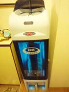 部屋に入ると、凛々しいけれど目のクリッとカワイらしい、陳先生がお出迎え。玄関ワキにある、スリッパ洗浄機(?)からスリッパが用意される。玄関先から先生の几帳面さが伺われる。