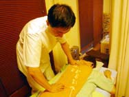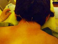 がっ!一通り、マッサージが終わると、手術着のように背中を開けられ、首から肩、背中に、ぶすっぶすっ、と鍼治療が始まった。(ええっ〜〜!?もう鍼???)普通60分の治療をお願いした場合、念入りにマッサージした後、鍼治療は最後のクライマックスの場合が多い。なので、施術を始めて20分も経たないので少々困惑する・・・