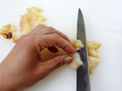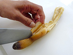 私たちがいただくのはこの恥ずかしい〜「水管」という部分で、さっと湯通しすると甘みがあり、とっても美味しいのよ。