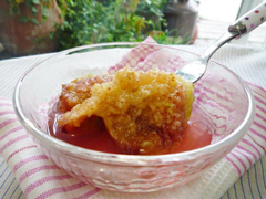 | 【4】 | 粗熱が取れたら、さらに冷蔵庫で冷やし、生クリームを添えていただきます。 |
