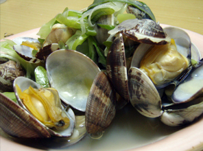 最後は、やはり大トリのアサリ。他の貝の下ごしらえや調理をしている間に、海水とおなじ濃度の塩水に浸けて砂出し。王道の酒蒸し(ワイン蒸し)にしました。今回はアサリの収穫量が少なかったけど、スーパーで買うものと違って身がパンパンに詰まっていて味も濃い。うまかつたあ〜。