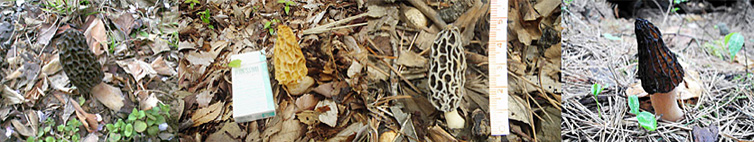 一番右の写真が黒くて三角のトガリアミガサタケ