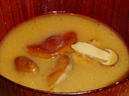 チャナメ、ハナイグチ、ツガタケの味噌汁